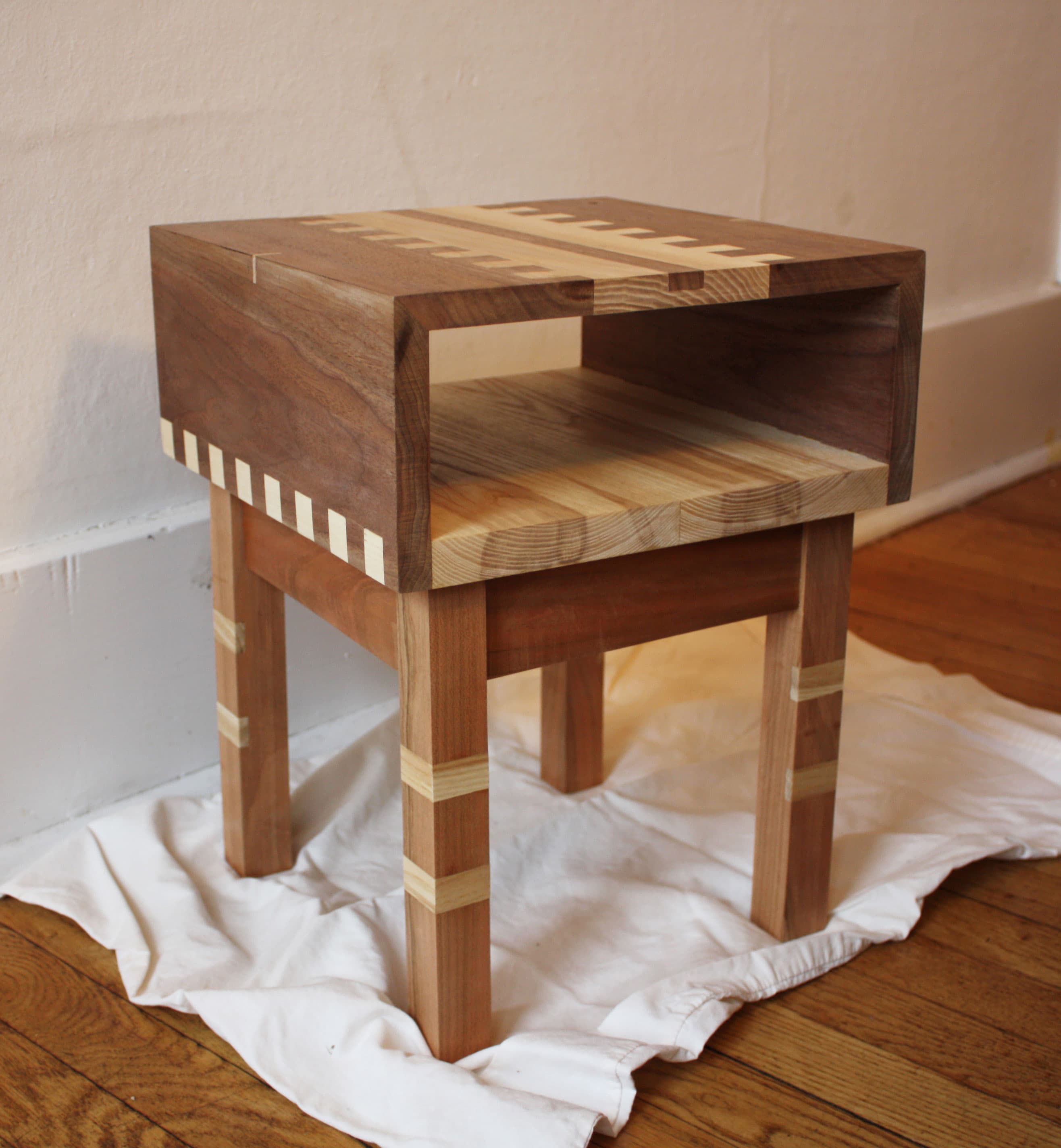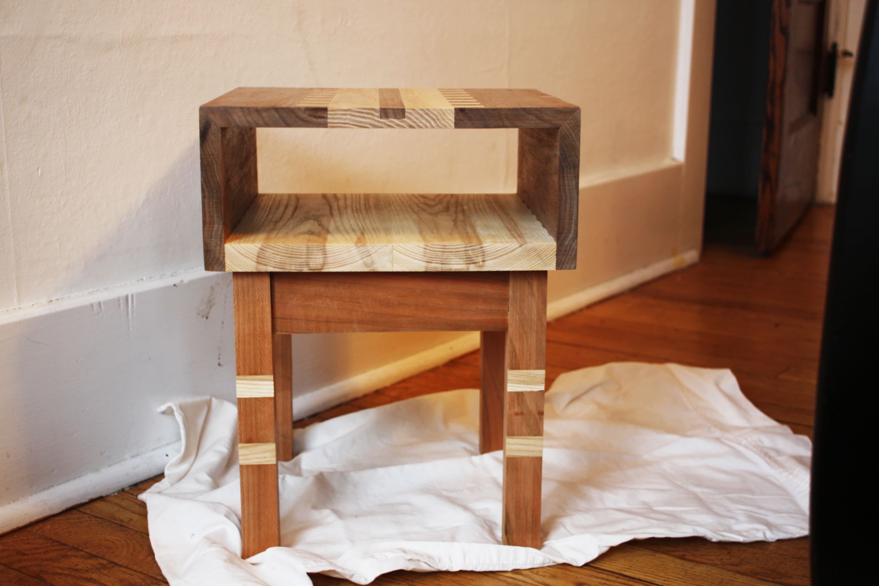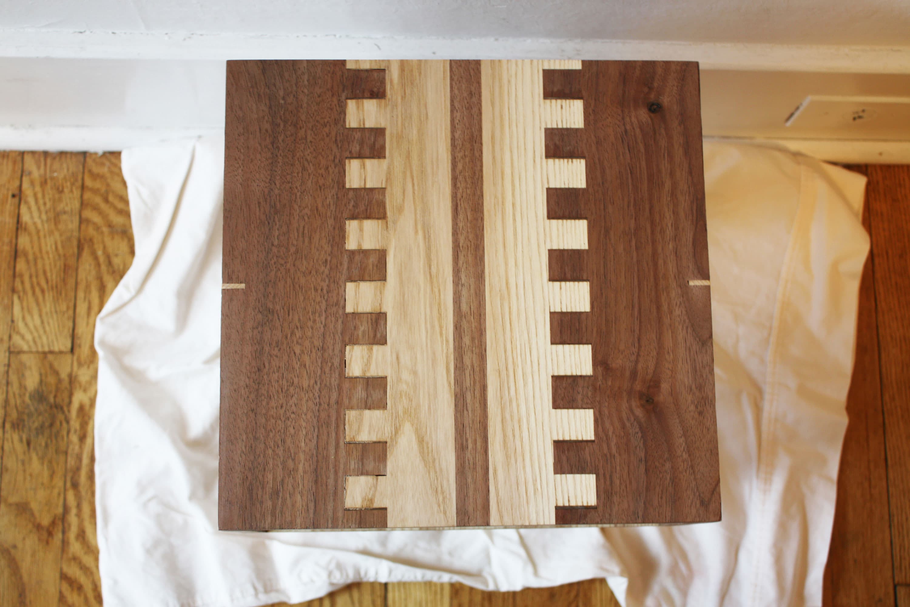 This two-part ladle structure includes an handle that was turned off-axis and treated with milk paint.